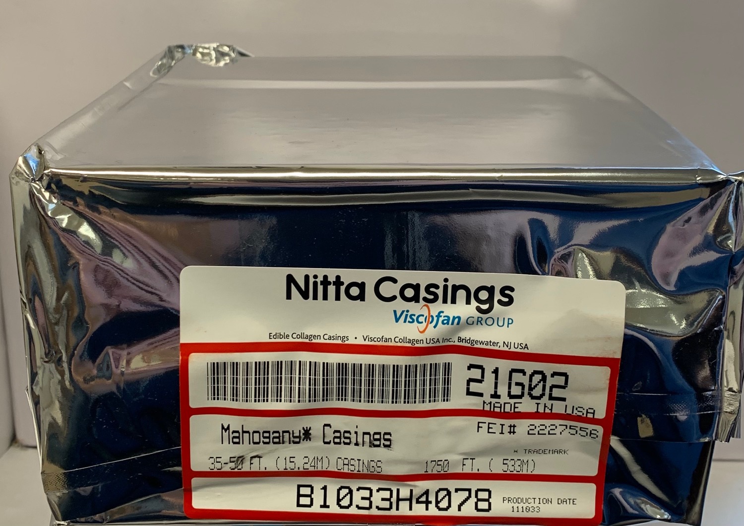 21 MM (approx .83″) 50 Ft Long, Mahogany Collagen Casings, Case of 50.