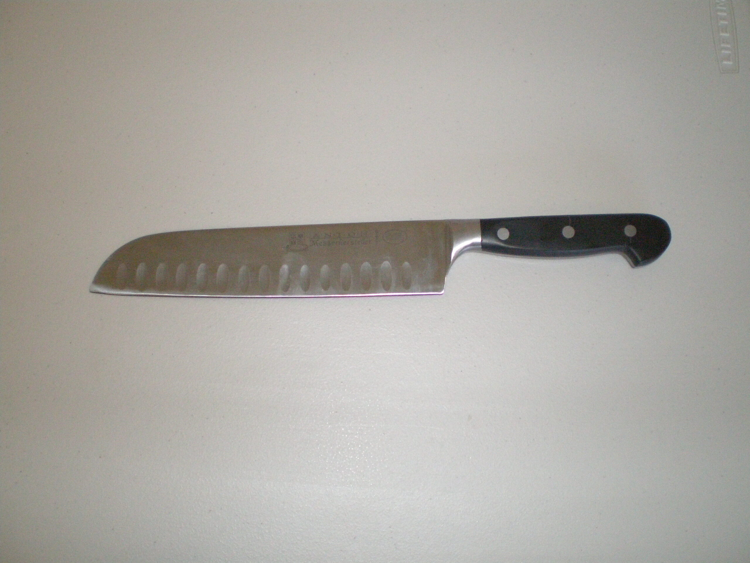 Anton Messerhersteffer 8.5 IN Full Tang, Forged Santoku Knife with Granton Edge and Dura-Plastic Handle. German Quality at an Import Price.
