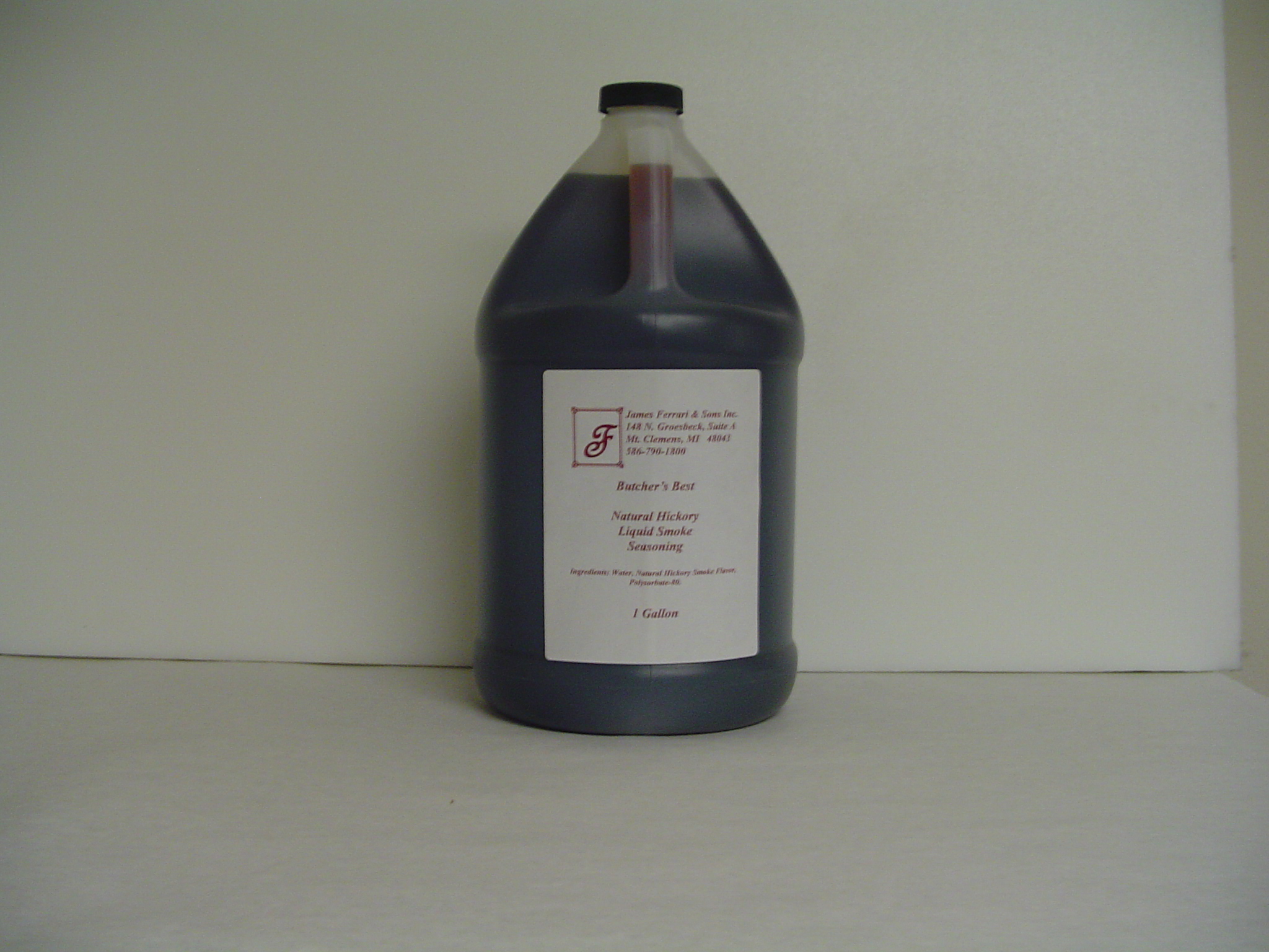 Ferrari’s Own Brand of Butcher’s Best Liquid Smoke Seasoning. 1 GL Bottle. Ingredients: Water, Natural Smoke Flavor and Poly-Sorbate 80.