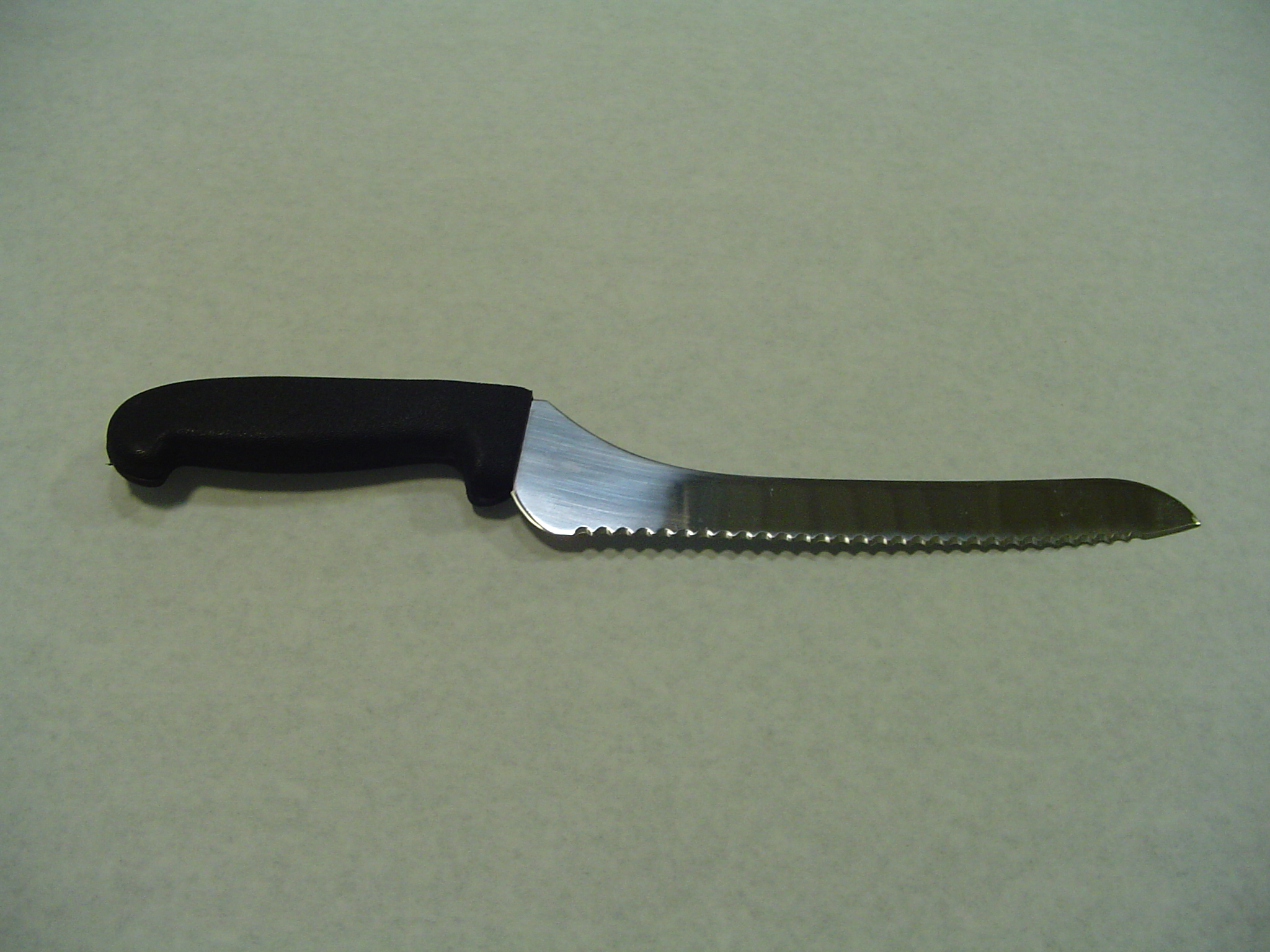 Ferrari Brand 8 IN Offset Serrated Bread Knife. High Carbon Stainless Steel Blade with Black High Impact Plastic Handle.